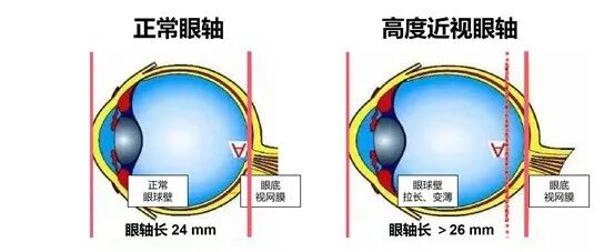 许多人将高度近视(通常指600度以上)简单理解为光学焦距问题,仿佛只要配戴足够度数的眼镜或者做一个屈光手术就能解决。事实上,高度近视的核心问题并非单纯的屈光不正,而是眼轴长度异常增长(眼球从正常的24mm左右可能延长到26mm甚至更长)所引发的眼底结构改变。就像吹气球一样,眼轴越长,眼球壁越薄,眼底的视网膜、脉络膜就会被“拉伸”得更脆弱,更容易出现破洞或撕裂。