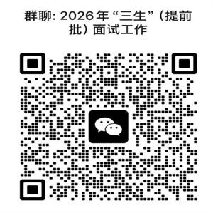 1、请所有参加面试的考生于2026年1月14日上午8:00前扫描下方二维码进入面试群并查看群公告,按群公告要求完成相关准备工作。
