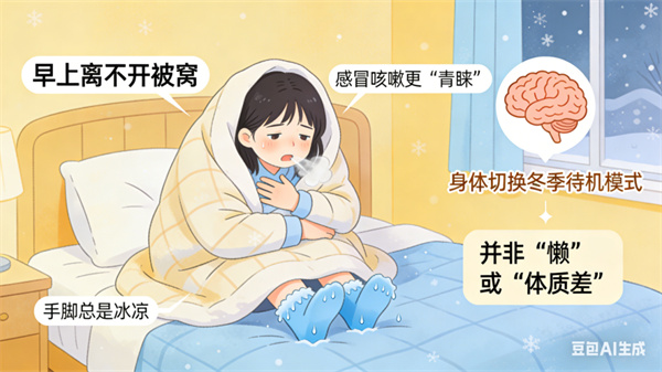 不知道大家有没有这样的感觉:一到冬天,人好像就特别容易累,早上离不开被窝,手脚总是冰凉,感冒咳嗽也好像更“青睐”我们了。先别急着怪自己“懒”或“体质差”,这可能只是你的身体,正在聪明地切换进入“冬季待机模式”。